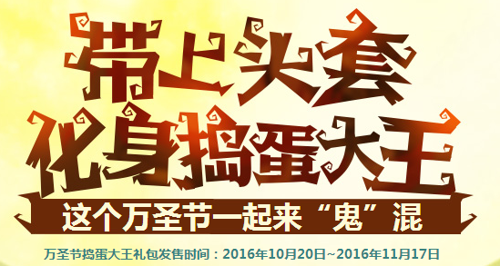 温馨提示:11月17日维护后,万圣节捣蛋头套礼包将会下架,喜欢收藏的勇士请及时购买。头套里面赠送的道具将会在12.1日维护时删除。