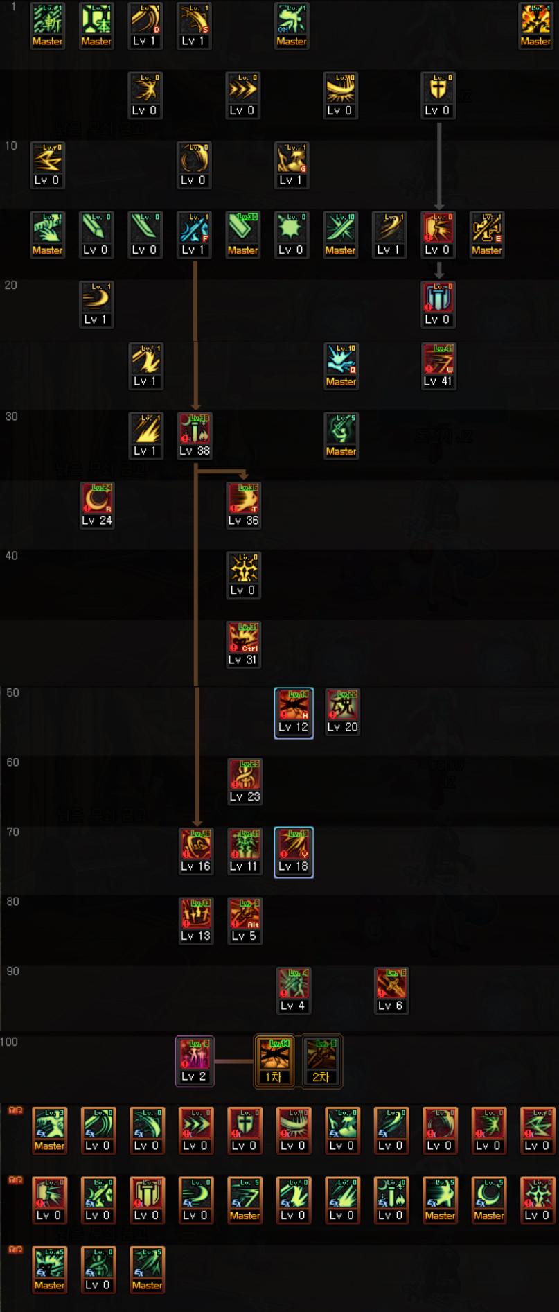 巨宗的技能加点基本上和95版本没有什么区别,所以新增的SP只需要把三觉之后开放的主动和被动选择点满即可。