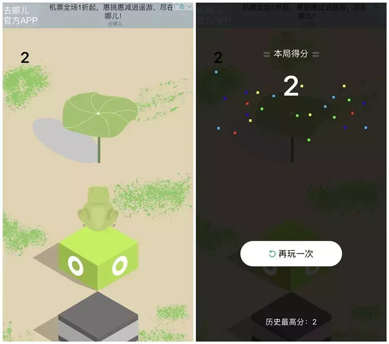 打开游戏才发现,这特么什么鬼?这不是青蛙版的跳一跳?设计的不用心就算了,玩起来根本不流畅,而且还满屏的广告。
