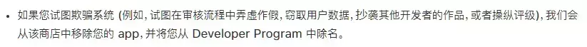而目前苹果对于山寨盗版软件的处理方式更多的是上架后再进行移除,并将开发者从 Developer Program 中除名。。