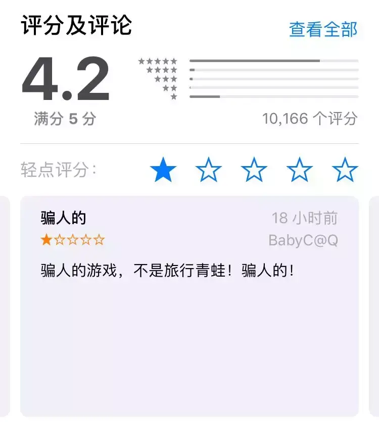 然而尴尬的是,因为这个游戏只有日版,名称也是日文的【 旅かえる 】 ,很多新玩家不明觉厉,直接去 App Store 搜索 【 旅行青蛙 】 。
