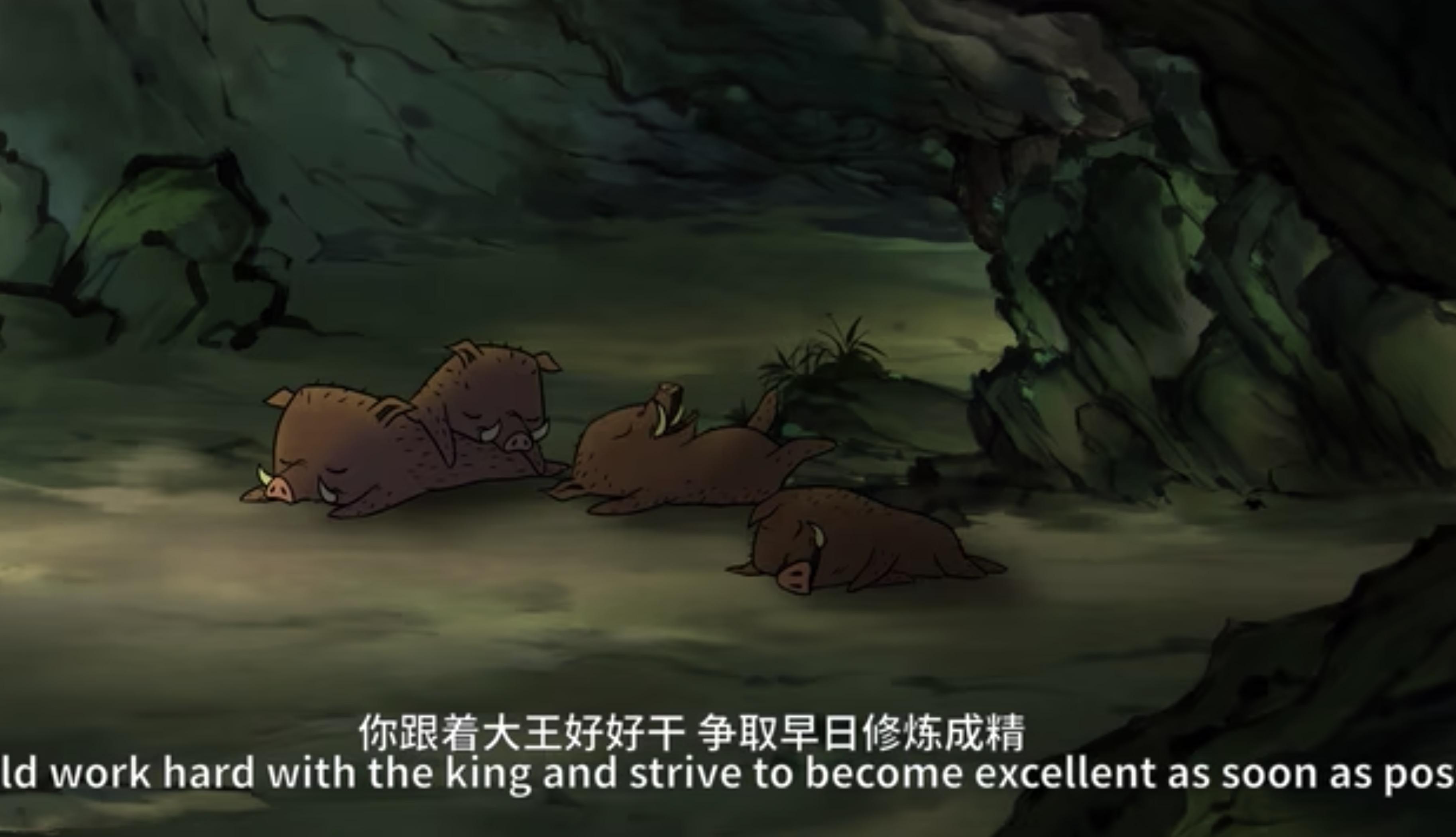 正因为听了说书人的话,让小猪妖萌生了逃离山大王的控制,也想成为孙悟空这样的人。于是在唐僧师徒到来的当天,逃离了山大王的控制,一路被狼妖追到了孙悟空面前。