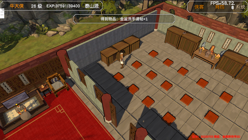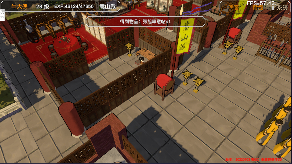 张旭率意贴稍微麻烦点,需要解锁五岳并派任务,我们先到东岳泰山派,击败开门弟子,跟天门道长对话触发战斗。战胜后获得泰山十八盘秘籍,宝箱得到金盆洗手请帖。