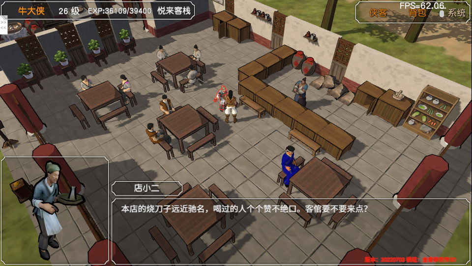 因为这简单的一句话,当年我跑遍了整个地图,最终只找到一个五宝花蜜酒,结果当然是无法触发的,在这里卡了很久……后来无意之间与店小二对话,从店小二嘴里得知这里有好酒烧刀子,反复对话店小二会一直说:客官要不要来点。