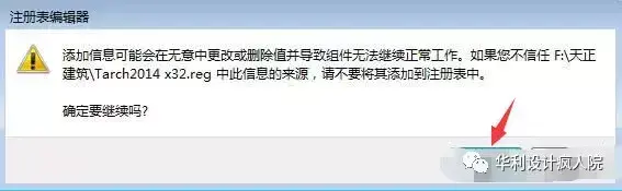 13.双击打开tarch2014 X32.reg注册信息,点击是