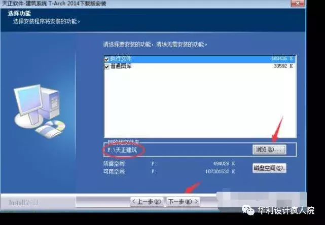 5.点击浏览更改软件安装路径:建议安装到除C盘以外的磁盘,可在D盘或其它盘里面新建一个文件夹天正建筑。点击下一步。