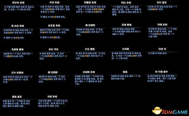 选完母星后还需要选择初始的星系系统,星系系统代表初始星系的星球配置。