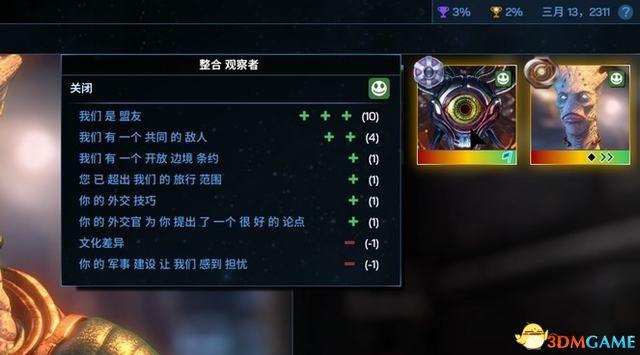 此外,分配一个外交官、签订开放边境等条款都能提升好感,除非玩家选择的是以武力为主,不然通常都能够触发”共同的敌人“这个选项。