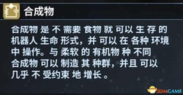 合成物不需要食物,也不受环境影响,但相对的是它们并不能自动繁殖,只能通过制造来增加人口。