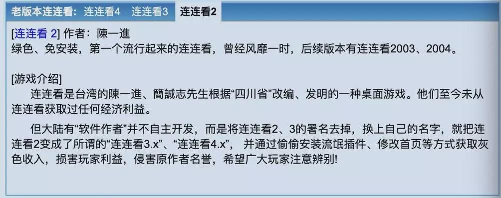 “其实,‘连连看’应该脱胎于10年前的投币台式机中‘中国龙’一类的游戏,当时这类游戏由于背景图片多为半裸美女图片而常搞‘地下活动’。”
