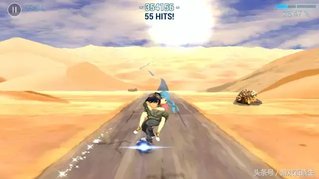 作为一款极其注重视觉表现的音游,本作把打谱与跑酷结合到了一起,所有与节奏对应的击打单元在游戏中变成了敌人,玩家点击音符就相当于攻击敌人了。因此本作的打击感很不错,细看下来角色的打击动作也是干脆利落的同时,又不乏可爱有趣。