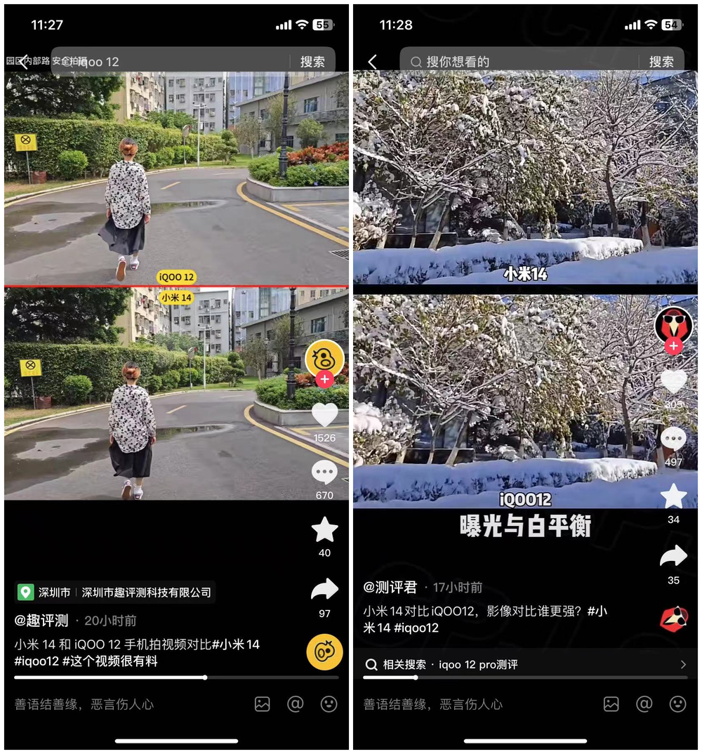若iQOO逐渐淡化电竞手机定位,后续宣传时主打卖点又是什么?以影像为例,目前各大手机厂商将影像配置直接拉满。甚至不少科技数码博主针对小米14和iQOO12的拍摄功能进行了实则对比后发现,在部分拍摄细节处理上,小米14明显优于iQOO 12。