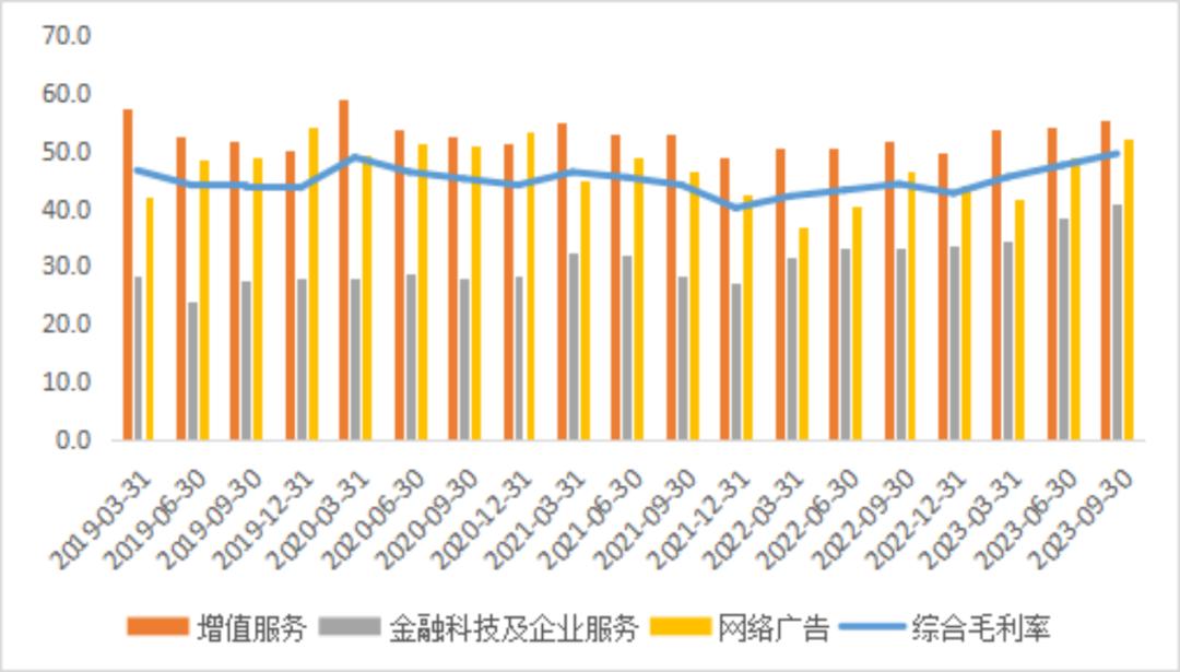 盈利能力方面,报告期内增值服务的毛利率为55.5%,较去年同期增长3.8pct,较二季度提升1.6pct。