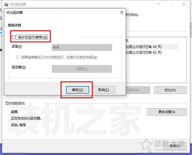 5、优化计划下面去除勾选“按计划运行(推荐)”,记得是去除勾选哦,点击“确定”。