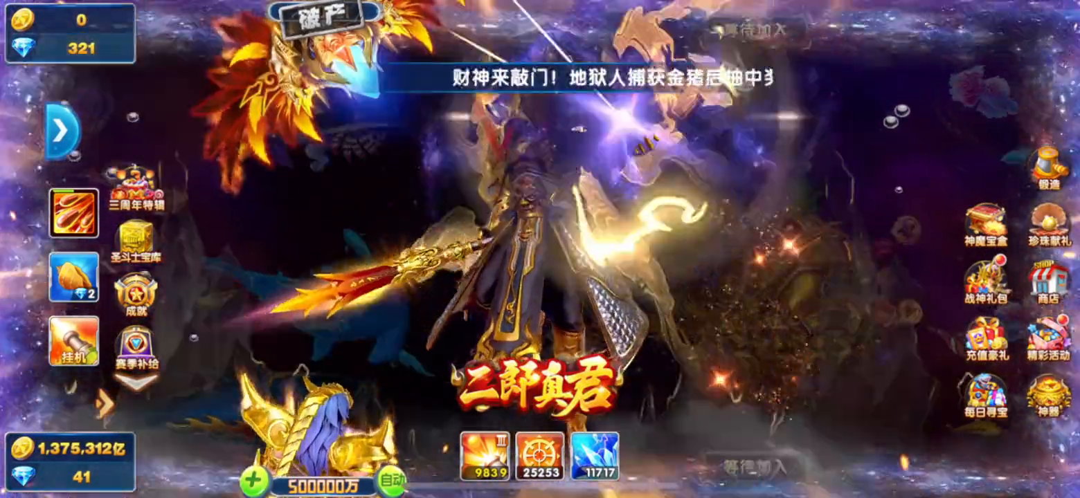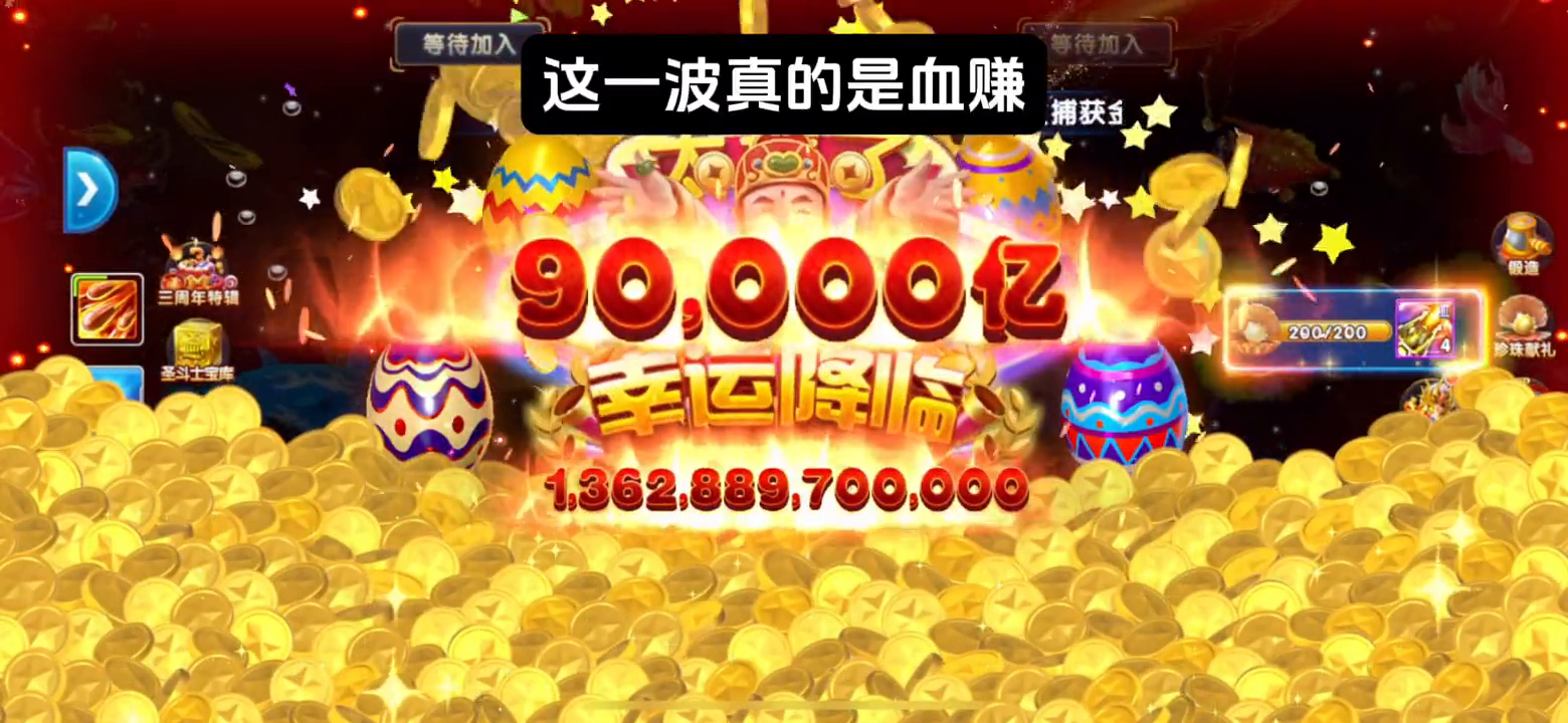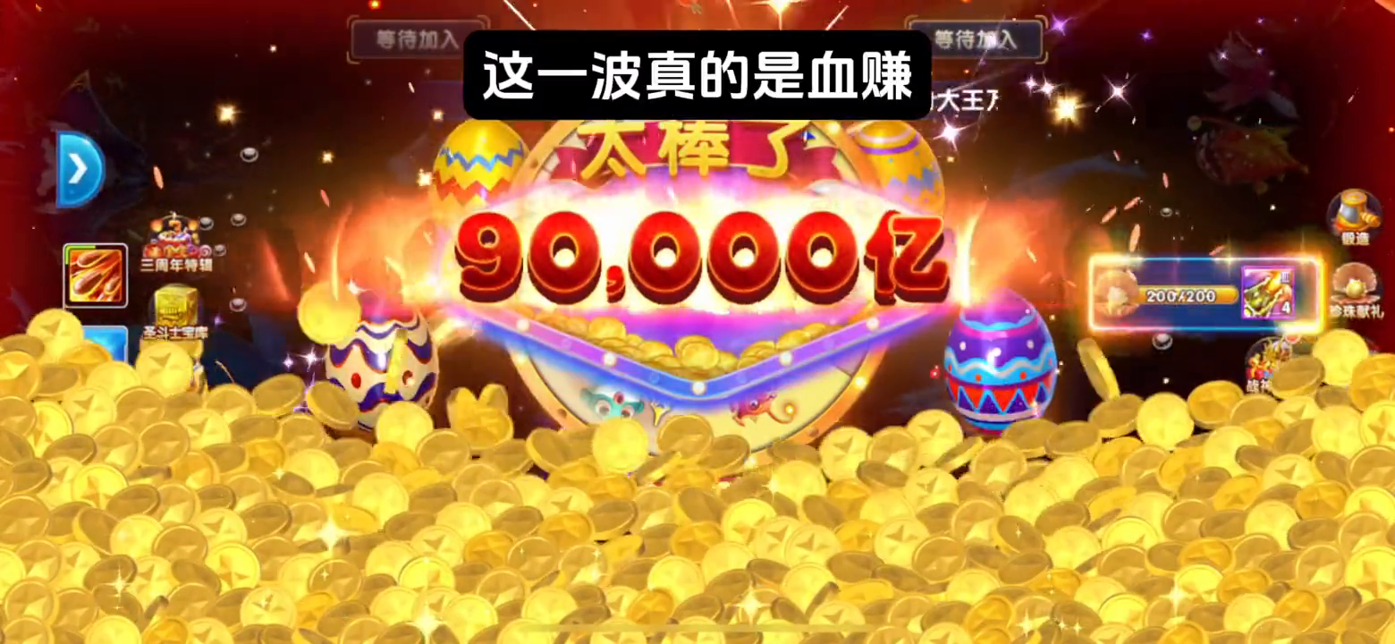 看看看看,彩蛋又被我干下来了,还有金猪也是。彩蛋一般我都让系统自己选,因为鱼哥有选择恐惧症,最难抉择了。仔细看,刚刚打的二郎真君机甲翻倍了,金猪转盘的指针还转到了彩金里,这一波真的是血赚。这时系统已经准备开启第三个彩蛋了,我去竟然结束了,每到这个时候都想看看没选到的是多少倍,结果。不言而喻,里面竟然有两个财神没有开到。这个渔场没什么价值了,我们撤。
