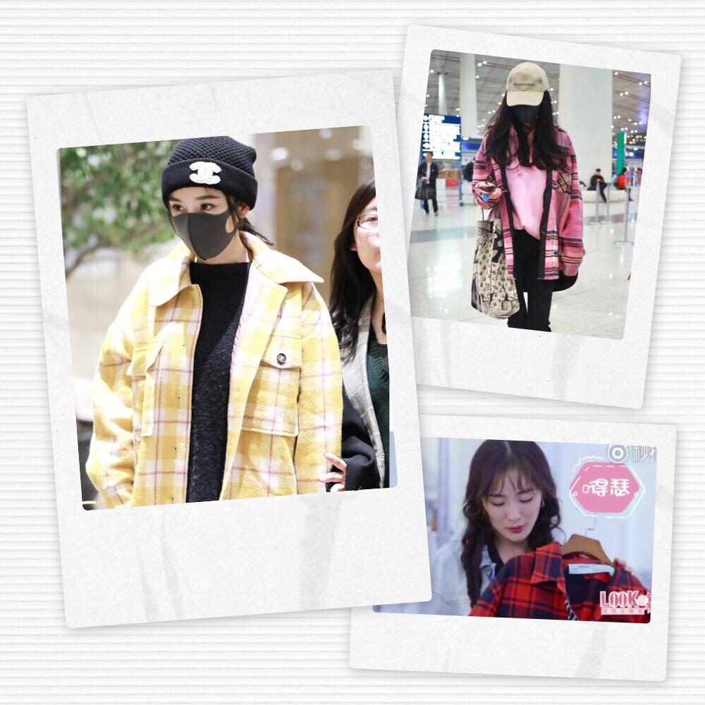 此外,男朋友衬衫、各种格纹衫同样是杨幂日常穿搭的大爱,她不仅在节目中力荐,也在各种街拍中身着这样的单品频频入镜。2018年初,杨幂现身上海,她戴着Chanel针织帽搭配黑色套装,而外搭则是一件奶黄格子外套,明亮又惹眼,瞬间减龄。这套Look出来后,淘宝很多卖家几乎同步上新了这件“杨幂同款”,Oversize的宽大格纹衫也成为扮嫩、撑住学院风的不二之选。