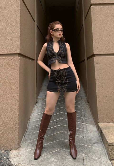 短上衣和什么最配?自然是高腰下装,特别是芝芙PICK的这种修身款式,此类下装风格可盐可甜,最适合她这样的百变“小妖精”。