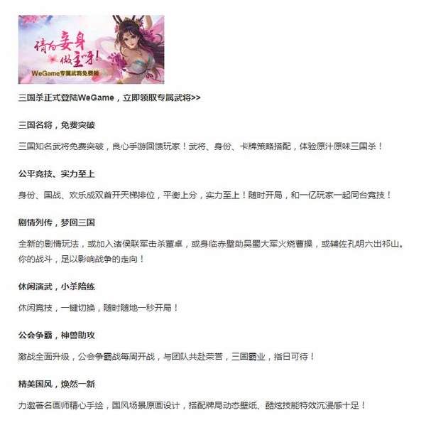 《三国杀》正式登陆WeGame 在线十分钟就能领专属礼包