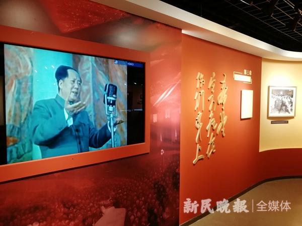 图说:1957年毛泽东主席在莫斯科大学向中国留学生、实习生发表讲话的视频在上海展出 孙云/摄(下同)