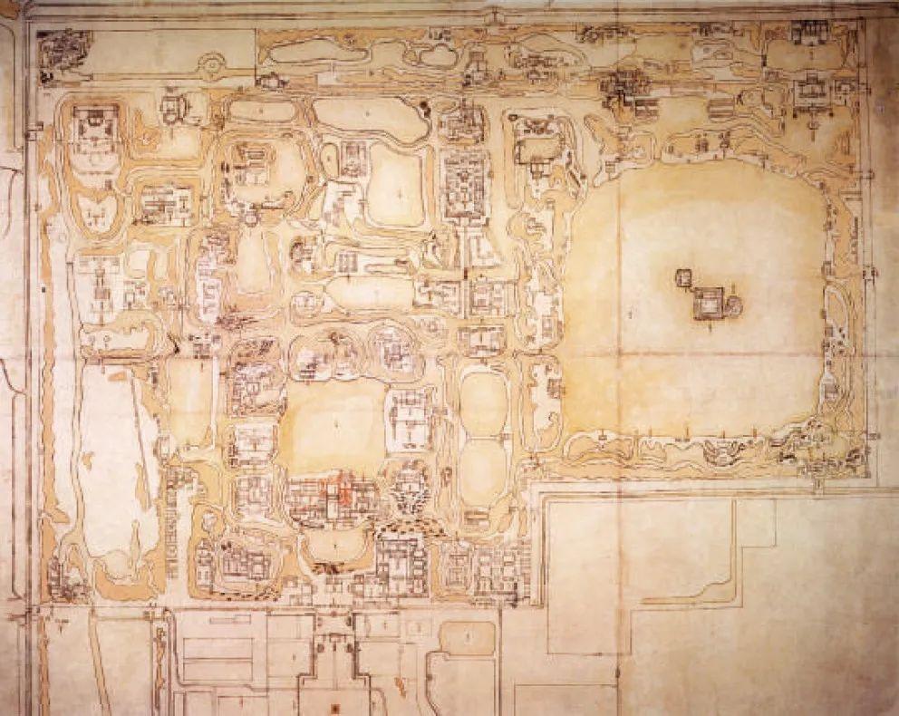 法国巴黎吉美博物馆馆藏一幅圆明园格局全图,这是目前所知流失国外的唯一一幅圆明园全园图,由于种种原因,多年来鲜为人知。伴随着国内样式雷图档以及相关专题研究的全面进展,近期本课题组经过多方协调,获得馆方的特别许可,有机会对这幅图样展开深入研究。本文将深入阐释图纸所呈现的圆明园园林格局,揭示其绘制时间、用途等信息,澄明这一珍贵图样的历史价值,以裨益于相关研究工作的深入开展。 相关背景圆明园肇建于清代康熙末年,历经雍正、乾隆近70余年的不辍营构,后延续嘉庆、道光、咸丰三朝,其恢宏的规模,优美的景观,丰富的收藏,曾令世界为之惊叹。但残酷的庚申焚掠以及随后无情的破坏几乎湮没了堪称“万园之园”的所有印记。今天我们只有通过查阅残留的文献、档案和踏勘残垣遗址来构想当年的盛况。对于大多数人来说,“一切造园艺术的典范”这样的赞誉愈加显得空洞无力,留在公众心目中最深刻的是长春园西洋楼的断壁残垣,曾经与紫禁城共同承担政治中心之责的圆明园面临着逐渐被遗忘的境地。加之,圆明园历经150余年的经营,其园林格局屡有变迁,如何准确把握各历史时期的园林面貌成为相关研究者关注的焦点,由于图档数量、内容极为有限,圆明园的全园格局变迁始终处于尚待明确的状态。