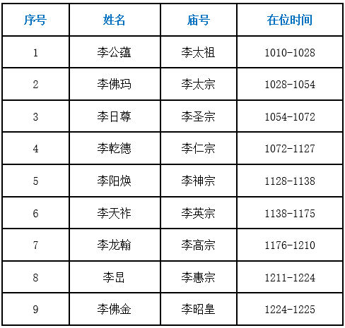 安南李朝九代帝王谱系表