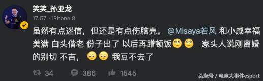 从这份名单不难发现,若风的婚宴一共设了35桌嘉宾,其中我们也看到了不少圈内的名人,像sky、miss、七号、蓝波儿、笑笑等等,但是对于笑笑来说,其实他在昨天解说EDG的比赛时就透露可能不能参加风队的婚礼了,而今天晚上他也是在微博对不能参加的原因进行了解释: