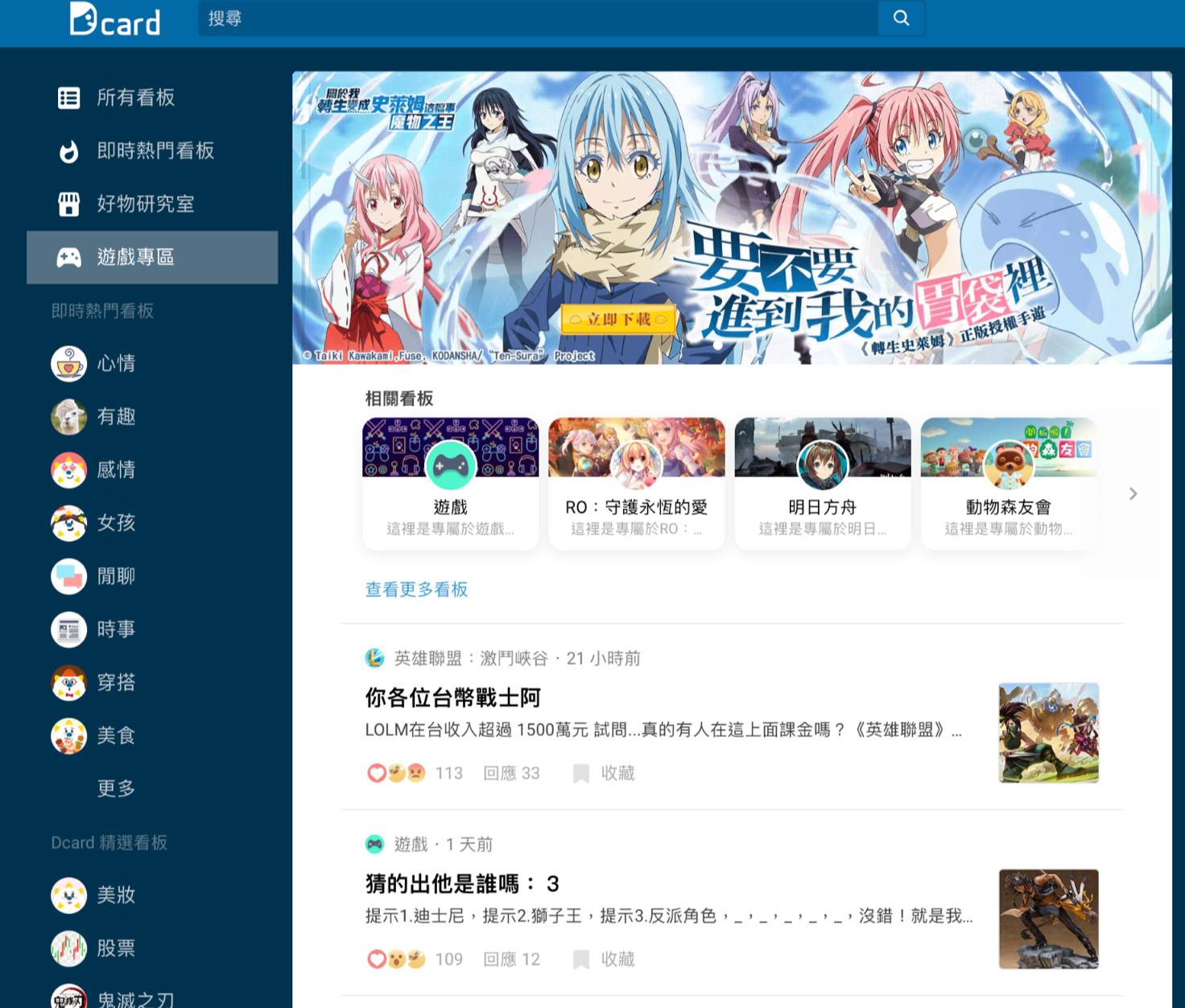 当然,除了巴哈姆特外,台湾还有很多其他属性不同、但比较适合推广的论坛,比如PTT、QooApp、Dcard等。或许是用户定位比较年轻,《转生史莱姆》手游在上线后,于大学生社区Dcard上也进行了相当有针对性的推广,虽然无法判断效果如何,但能想到Dcard这样的新兴论坛,足以证明《转生史莱姆》手游团队对台湾地区的熟悉程度。