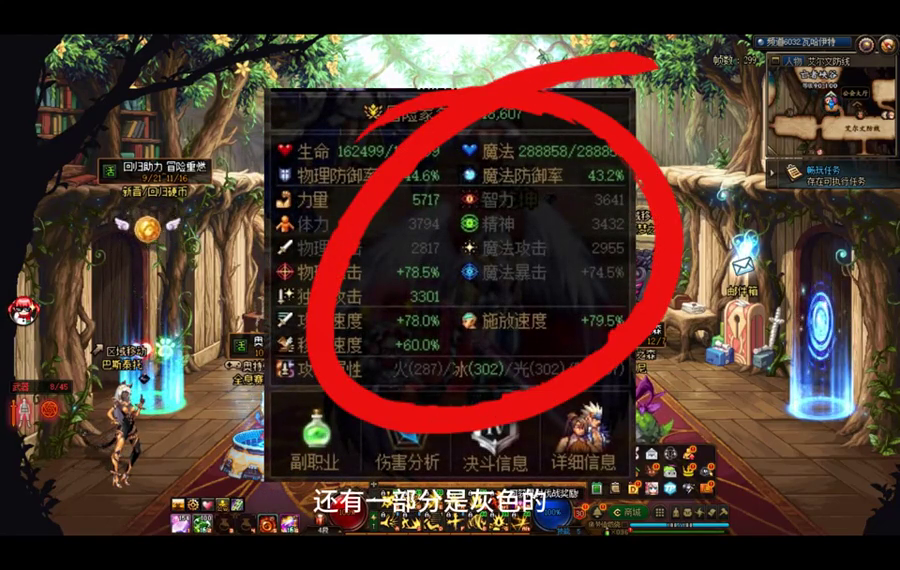 ·第二、当弄清楚自己是什么职业之后就需要了解职业的伤害构成是什么?这里挑简单易懂的方式来告诉大家。首先要了解伤害构成的属性有哪些,这里我用红圈给大家圈出来,这几条就是角色伤害的来源。