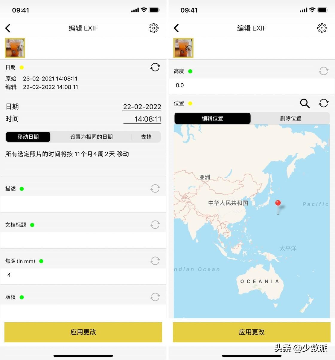 除了删除 EXIF 信息外,你还能手动修改拍摄时间、地理位置等信息。通过输入假信息来进一步保护你的隐私,也不失为一个办法。