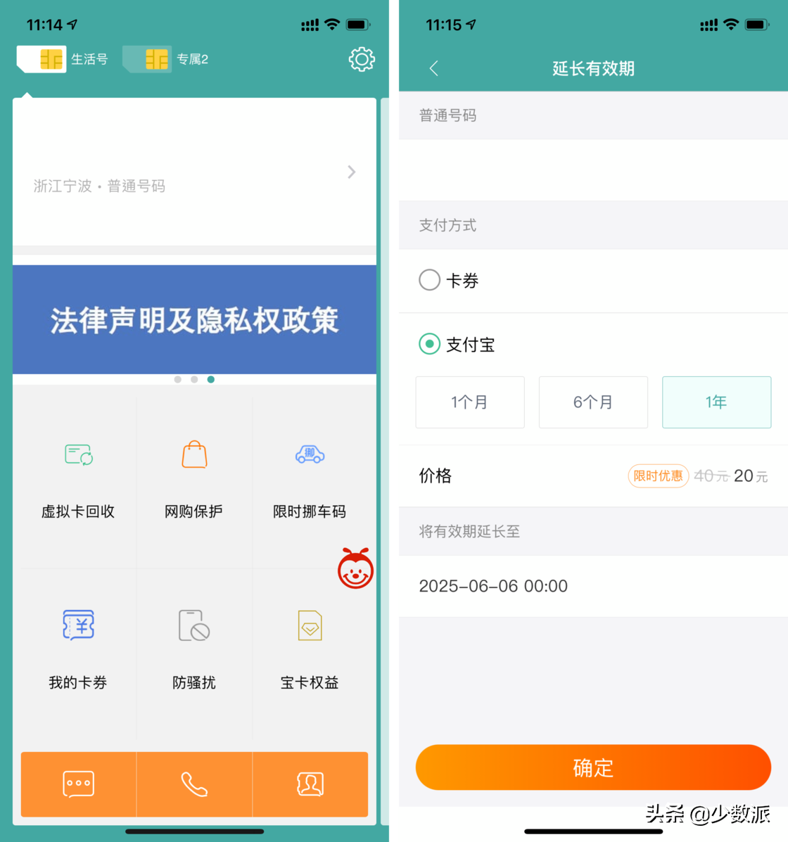 虽然早年间三大运营商都提供了小号服务,但联通的沃小号和电信的天翼小号要么只在小部分地区开放,要么已经停止服务。相比之下,中国移动的和多号还能正常使用,如果你是移动用户,可以在掌上营业厅或和多号 App 进行申请,资费为 5 元 / 月。
