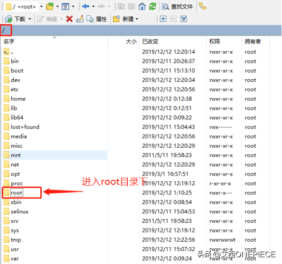 定位到服务端的根目录“/”下,找到"root"文件夹,双击进入。