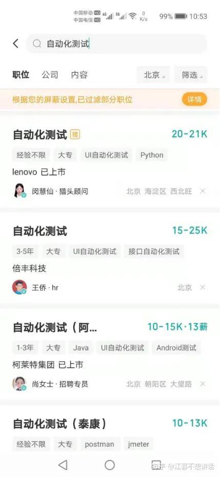而且就现在国内的测试岗位而言,测试岗位的技术水平是偏弱的,所以如果个人技术水平比较好的话,在测试岗位的晋升是很快的。在薪资上也是比同等资历的开发还要高一些的。