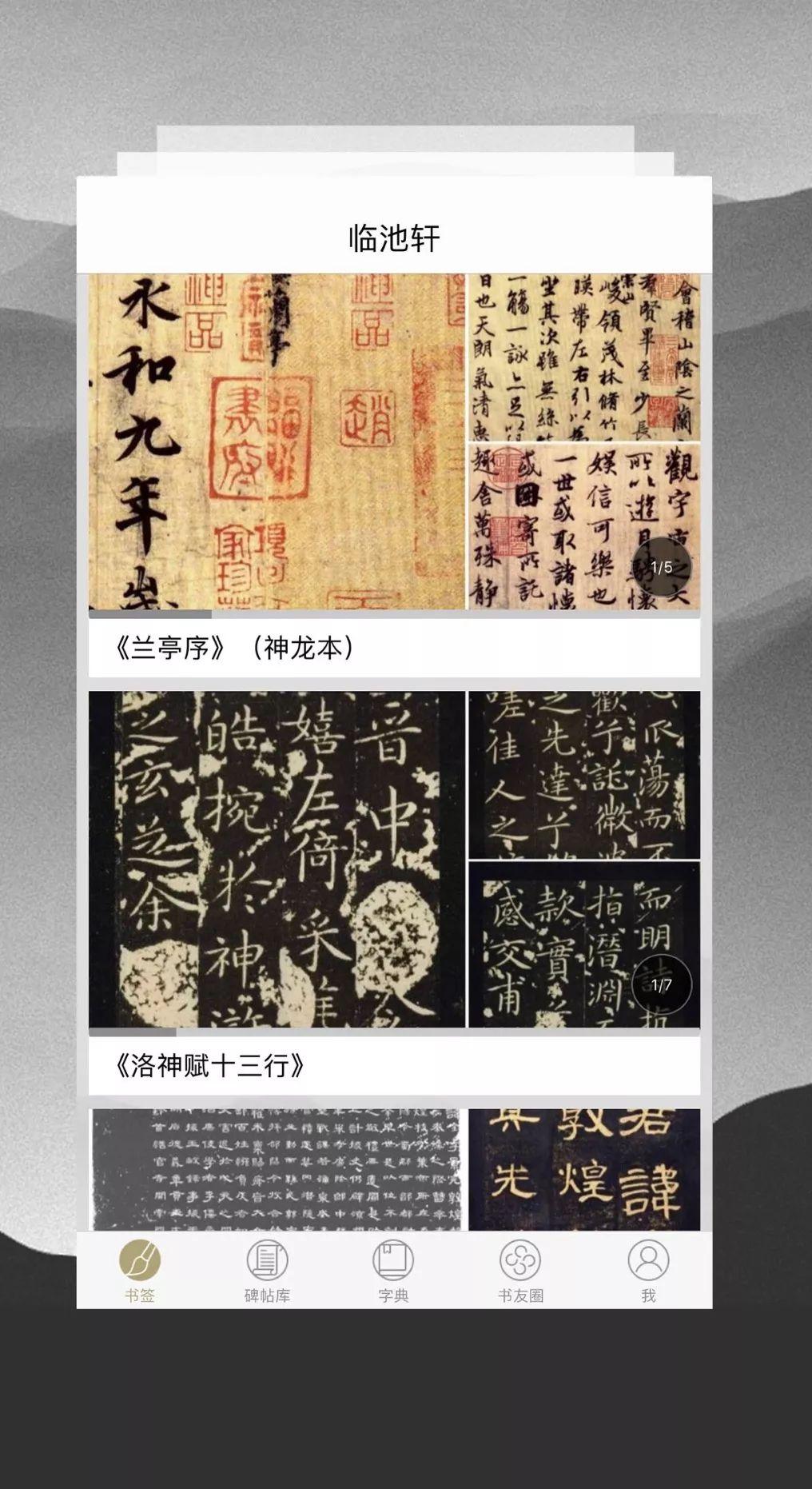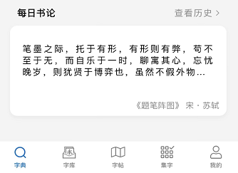 墨池书法资料库比较齐全,收录字帖数量多,而且很多都是横屏的高清长图的整张作品。书法字典功能每次可查询一个字,但能查询到的出处比较少。