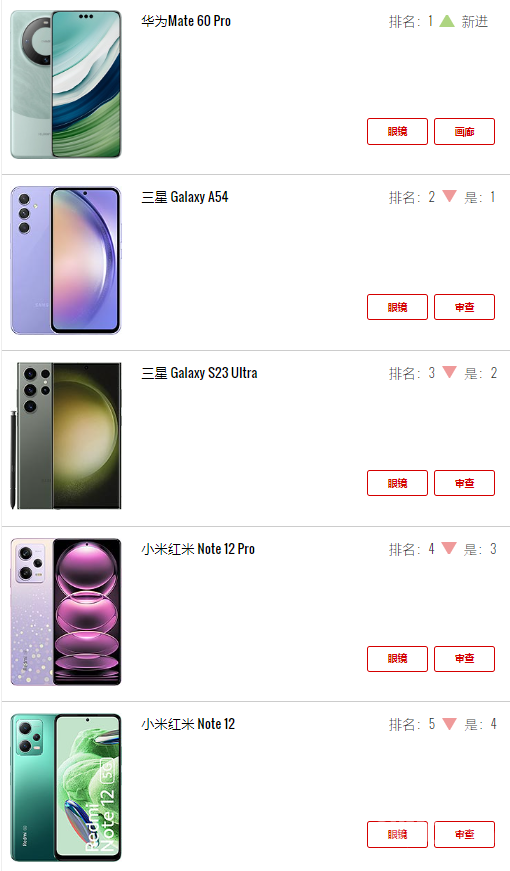 最新十大热门手机榜单出炉!华为Mate60 Pro拿下第一
