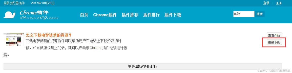 1.到“chromecj "网站,搜索”电驴“下载Chrome插件。