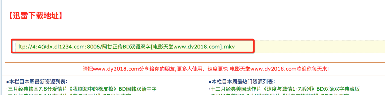 例如:电影天堂下载《阿甘正传》: