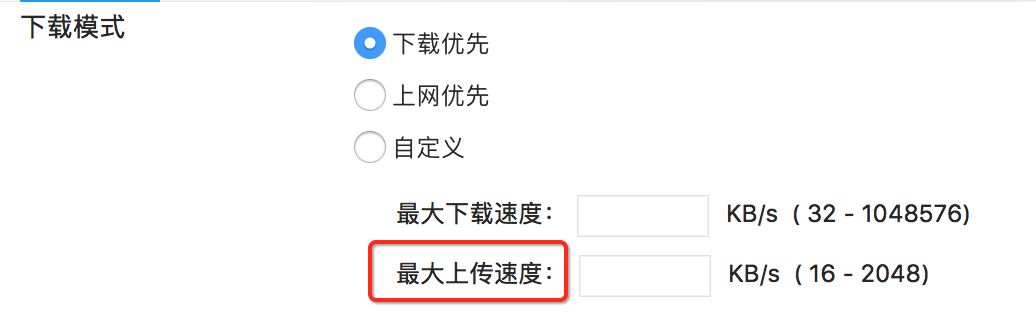 注:BT 下载讲究共享 精神,这跟互联网的共享精神一脉相承。所以建议不要限制上传速度 。