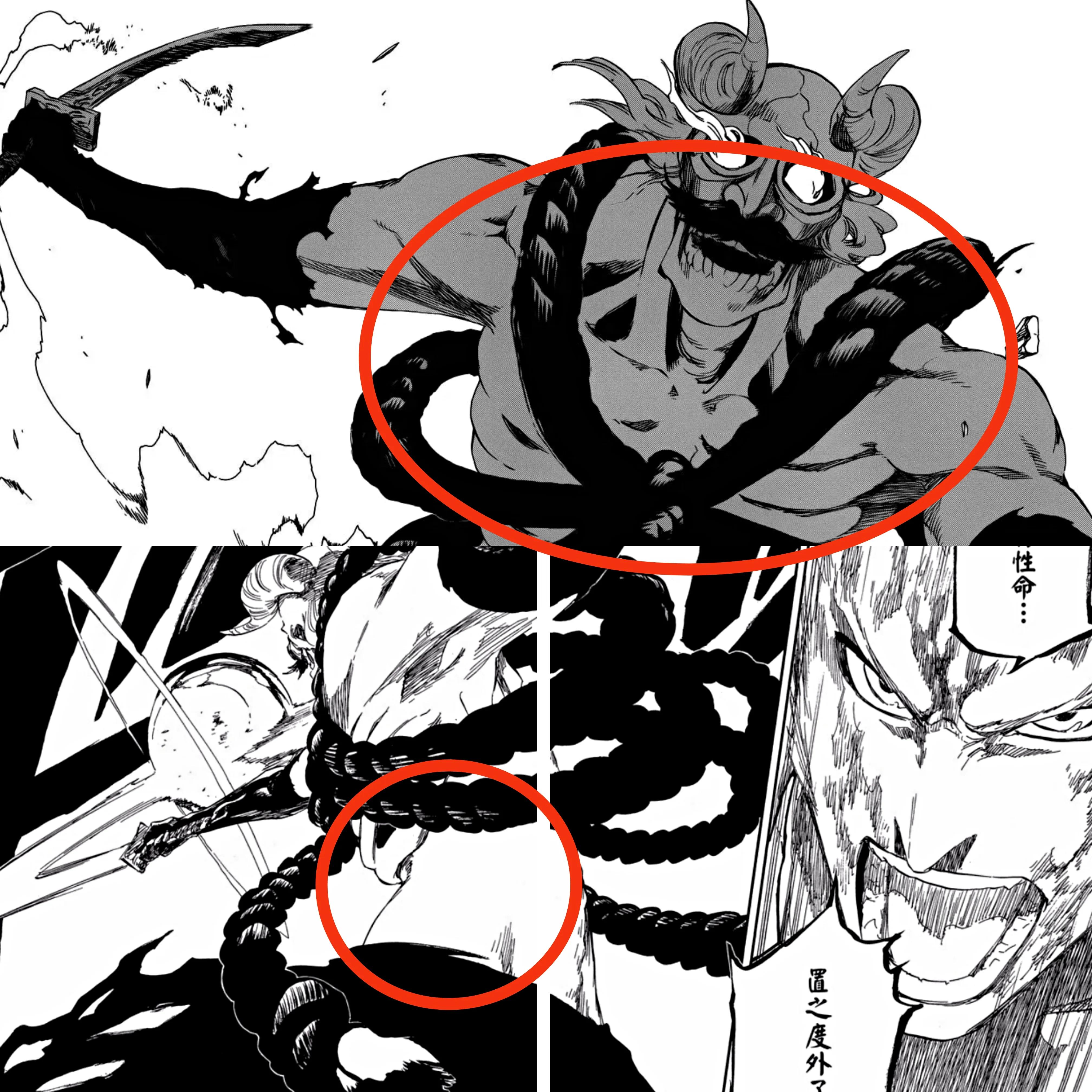 而取下铠甲的断铠绳衣更像在地狱中饱受折磨的芸芸众生,没有生命的迹象,会一次又一次的复活 ,因而,人化后的狛村与断铠绳衣下明王确实带有“不死” 的特性,这又一次呼应了不管是狛村还是明王,在这个形态都是“罪恶” 的。