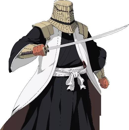 狛村的斩魄刀形象是一位穿着巨型铠甲,手握大刀的巨大战士形象。