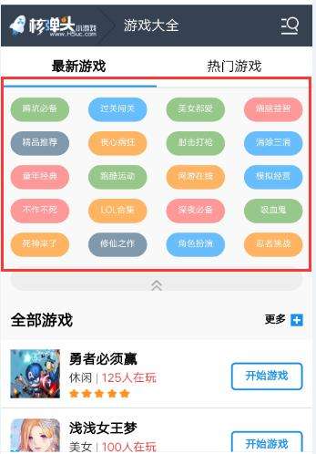 下面就让小编为大家提供一款十分简洁方便的游戏平台,它就是核弹头小游戏,里面汇聚数万精品小游戏,精挑细选,你可以搜集到任何你想要的各种类型小游戏,可谓是市面上最好的小游戏平台了。