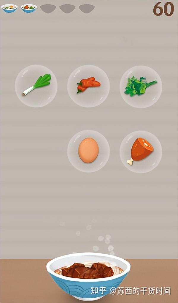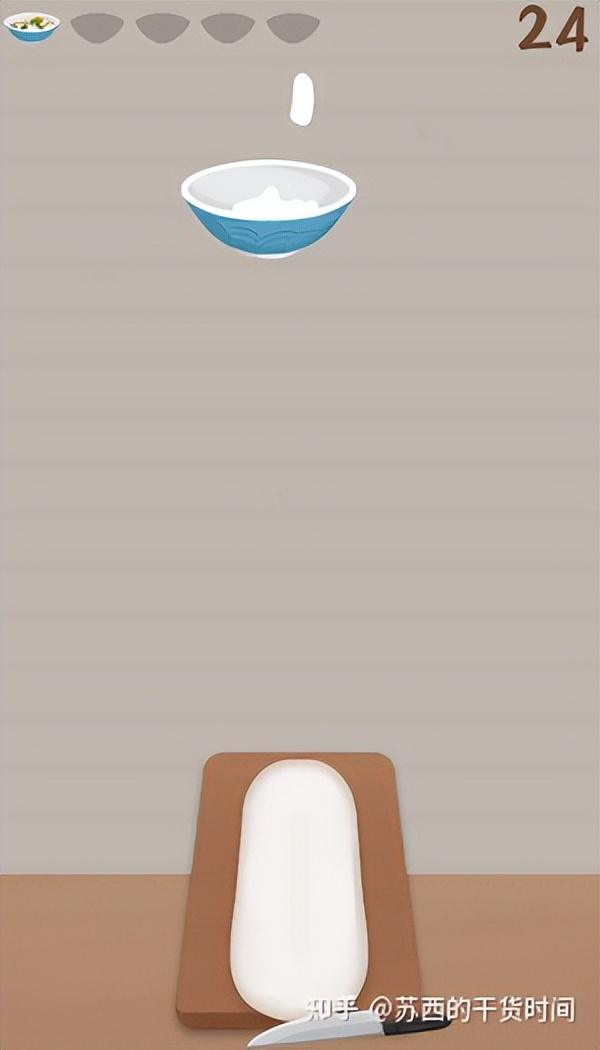 用鼠标控制小刀去削面皮,面前的碗会不停的左右移动,越到后面会移动的越快,所以怎么很快速的把面皮精准的丢进碗里是一个技术活了,削完一碗后可以选择配菜,一碗热乎乎的刀削面就制作好啦,亲测,玩着玩着就饿了