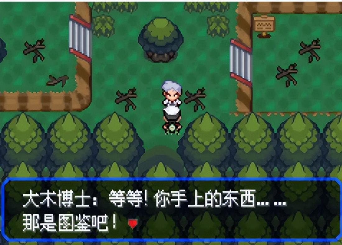 房间,上楼后调查一个精灵球,你的对手就会出现。对话后走出房子,往上离开天元镇时,发现博士正被一只针鼠追赶,他让你在旁边的背包里选择一只PM参加战斗,赶跑针鼠。