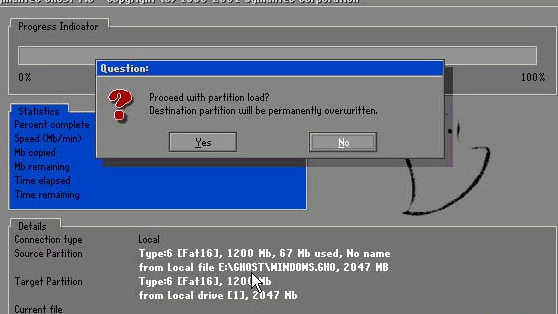 2。选择back enter,然后使用箭头键选择windows.gho并输入