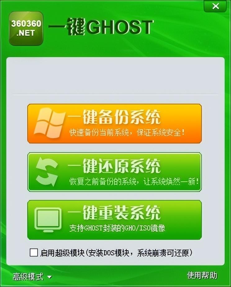 这是如何使用一键重影。希望对你有帮助360一键ghost——简单好用的系统重装还原工具