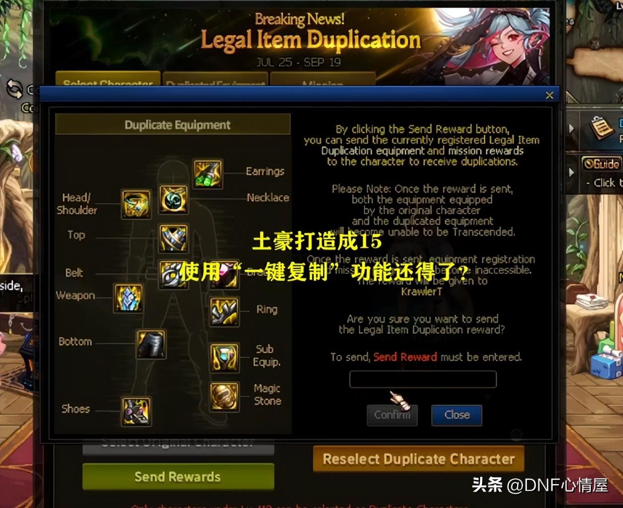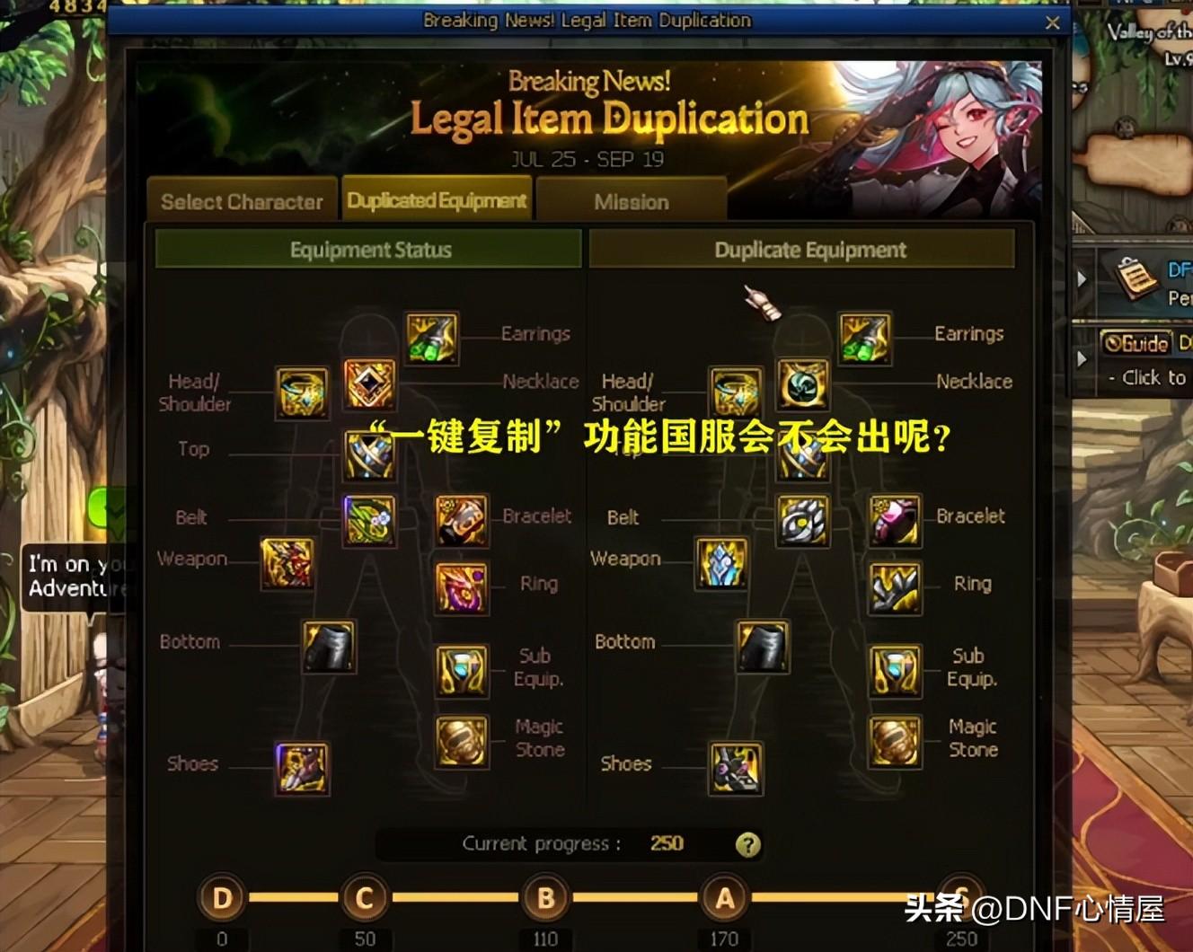 有玩家开始猜测,国服是否会引入这个“一键复制”功能。在9.21金秋版本中,游戏推出了“代号·盖波加”勋章副本,并对一大批职业进行了平衡加强。通常情况下,这会伴随着预约升级活动的推出。然而,鉴于国服中存在众多氪金玩家,他们已经拥有全身增幅15的装备,因此出现装备打造的“一键复制”功能可能会导致这些玩家轻松获得多个全身15的装备。因此,即使大硕都对这个功能感到心动,但国服策划很可能不会引入它。