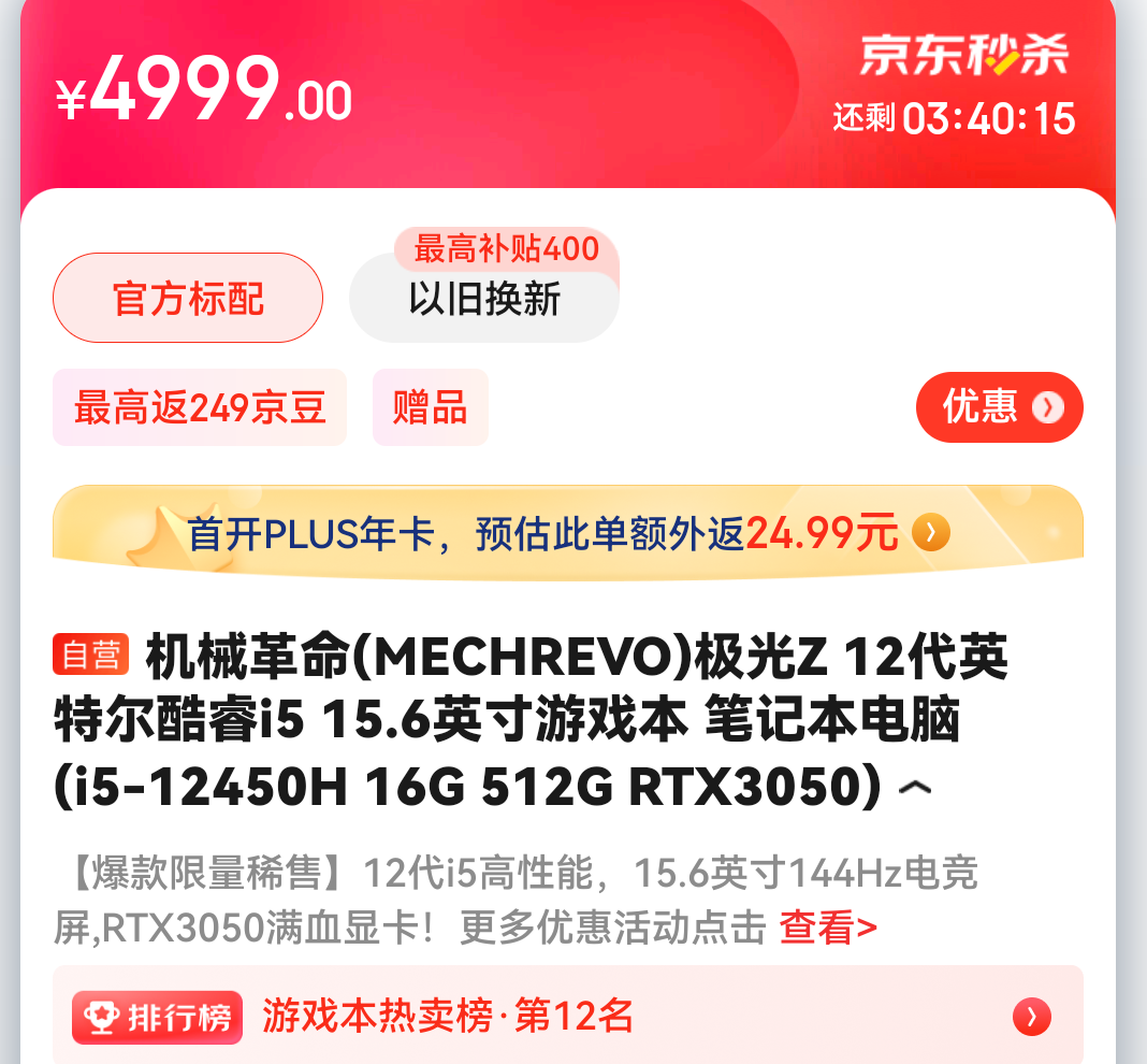 这是个二线品牌,近两年口碑是不断上涨的,所以品质应该有保证。12 代酷睿和满血 3050 在这个价位是非常少见的。