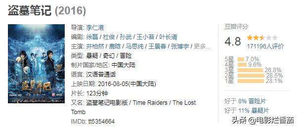 对于这部《盗墓笔记》,网友曾给出过相当中肯的评价:和《寻龙诀》之间差了一百部《九层妖塔》。