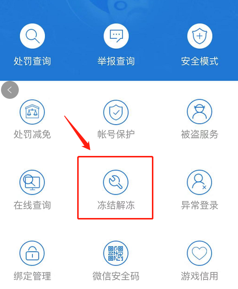 2、点击【自主服务】功能后,选择【冻结解冻】-选择【地下城与勇士】
