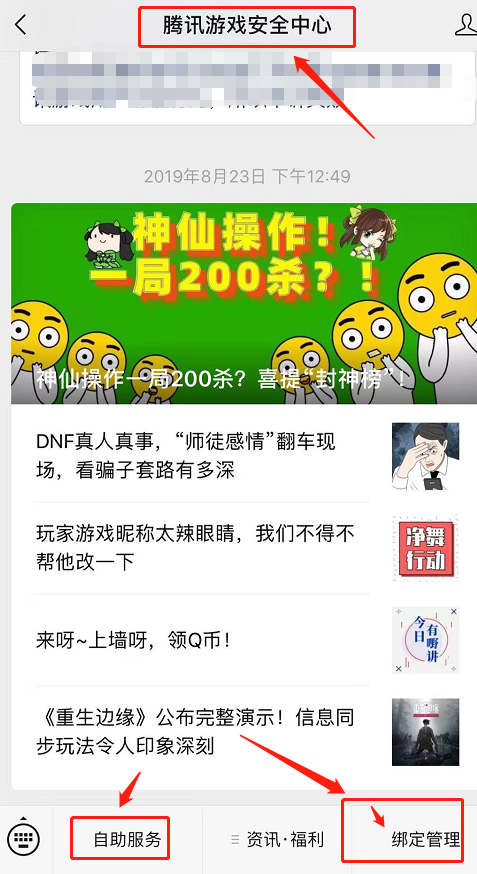1、微信公众号关注【腾讯游戏安全中心】,绑定好游戏账号。