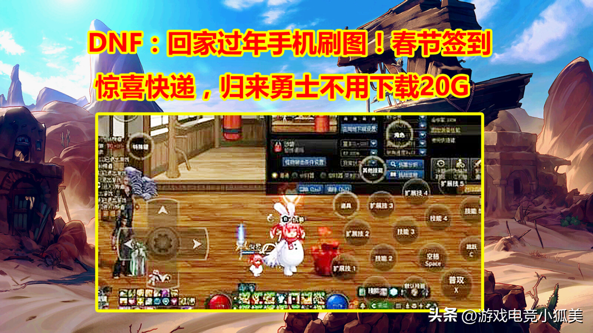 当然如果你家里有WiFi、电脑设备齐全,当然是客户端体验好。“地下城与勇士只小狐狸君爱谈游戏电竞”第三千四百四十五期《DNF:回家过年手机刷图!春节签到+惊喜快递,归来勇士不用下载20G 》,老规矩搞快点,直接上本次春节版本回家过年做好刷图准备的实测截图展示: